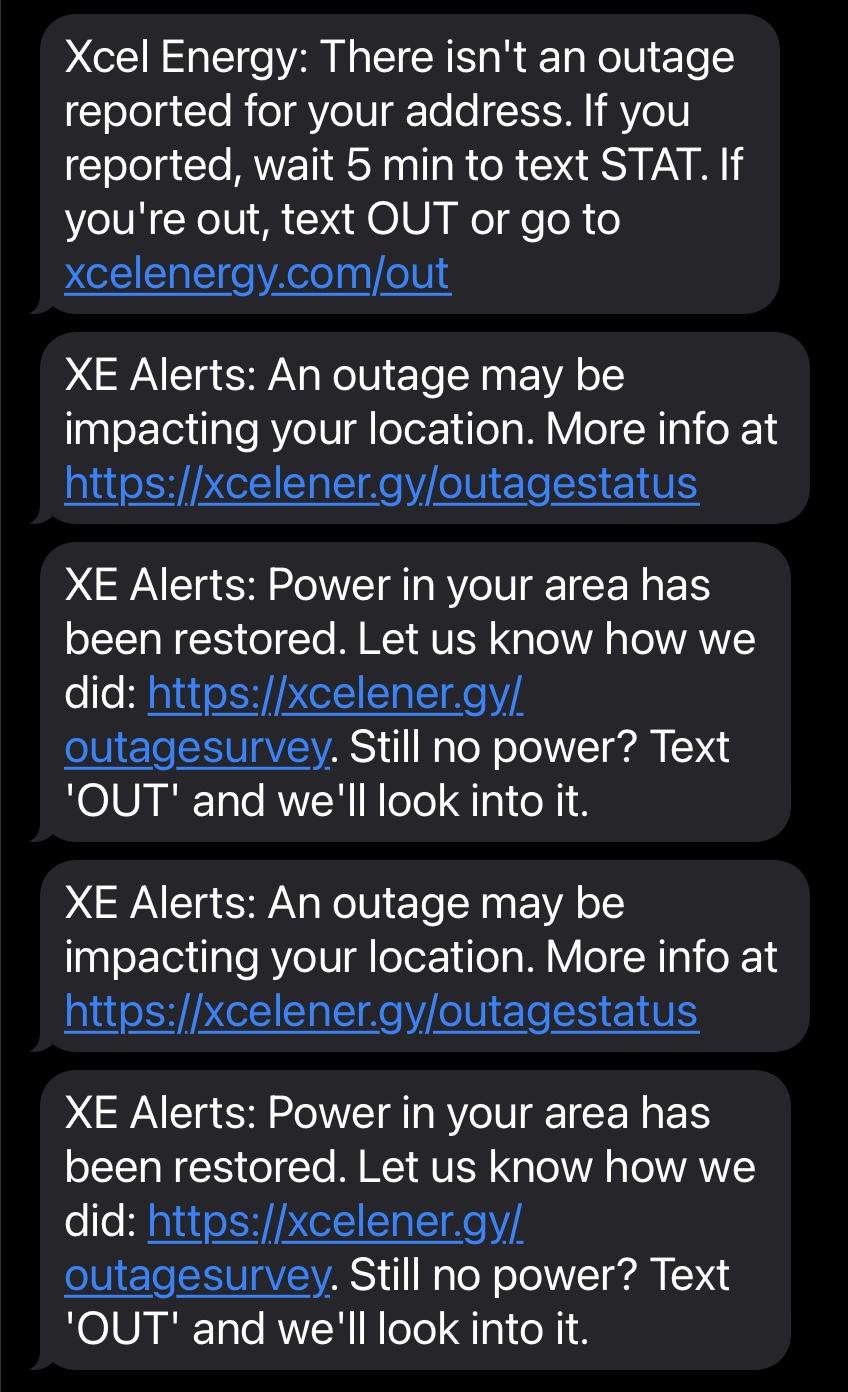 This was this morning. These were all sent within 30 minutes of one another. Both text and email. Xcel has no idea what they are doing. Incompetence on steroids.